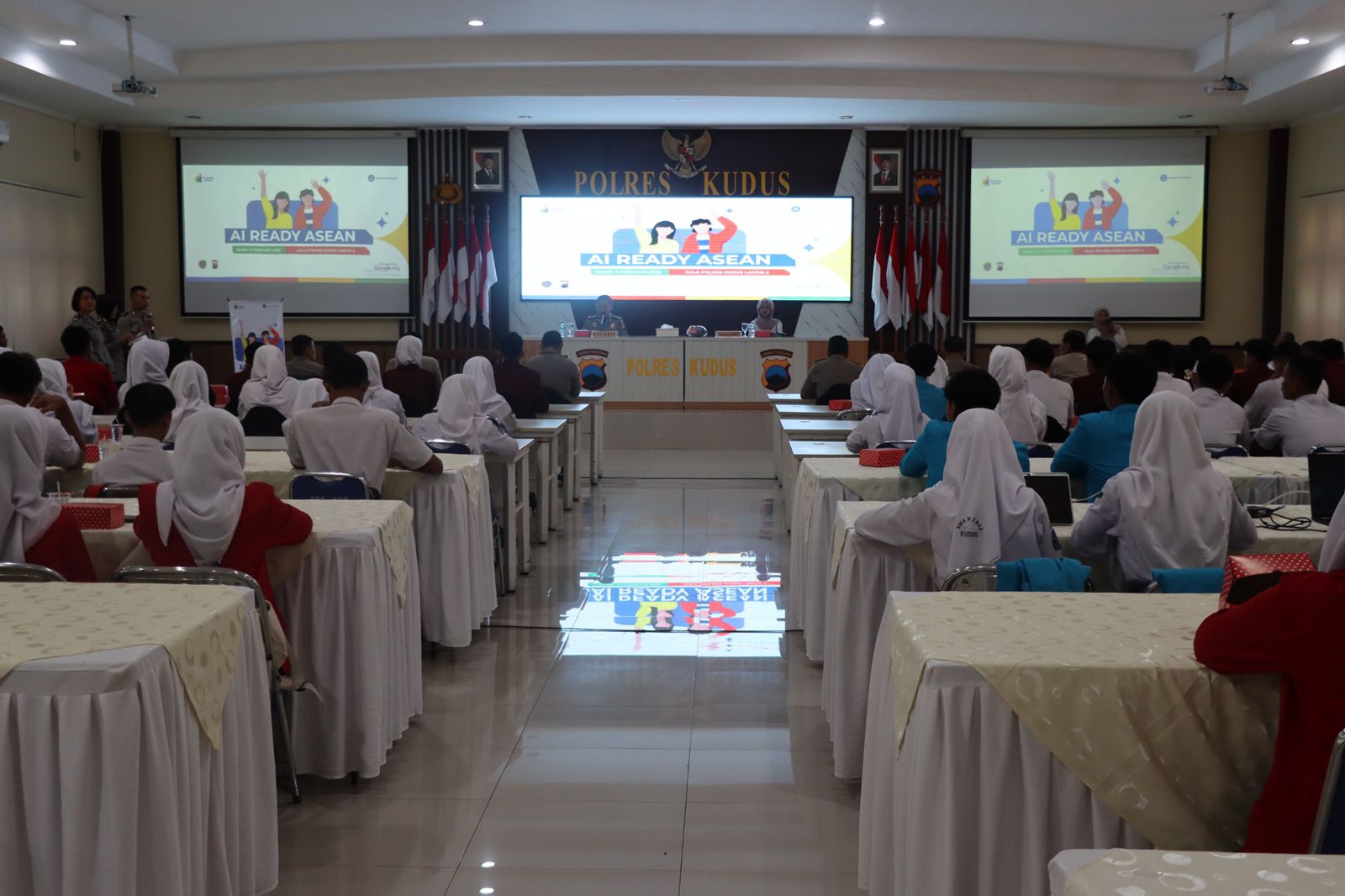 Kudus – Polres Kudus, Polda Jawa Tengah melaksanakan kegiatan Implementasi Pelatihan AI Ready ASEAN secara offline di Aula Parama Satwika Polres Kudus, Kabupaten Kudus. Kegiatan ini diikuti oleh siswa, mahasiswa, guru, serta orang tua sebagai bagian dari penguatan literasi digital di era kecerdasan artifisial.